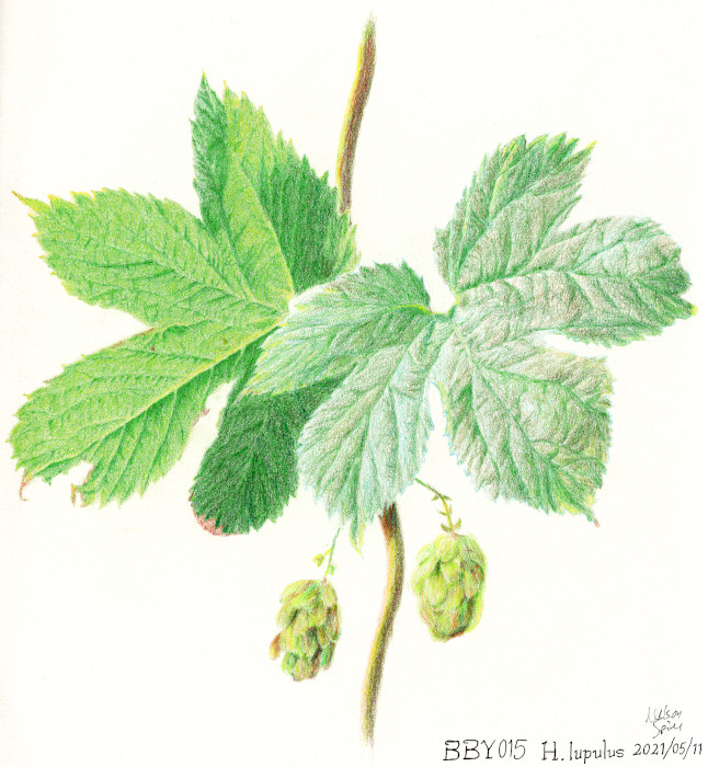 I was surprised when the flowers matured in mid-September. This was another proof that a budding botanist must closely observe things throughout the whole year before coming to a conclusion! These were unmistakably hops, although I had not knowingly seen the plants up close before. There may have been a farm that grew hops nearby back in the day, or since the vines are spreading and invasive, the plants could have travelled! Hops are listed as an invasive plant in the 2005 Weedbusters volunteer manual along the Southshore Trail at Burnaby Lake, where I have observed them still.