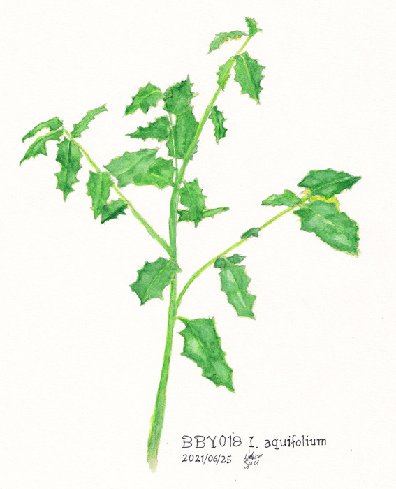 The species name “aquifolium” refers to the sharp, hooked or pointed shape of the leaves. This feature and name is shared by the Oregon grape. The inspiration may be from an eagle’s talons or beak, and presumably related to “quills” as well.